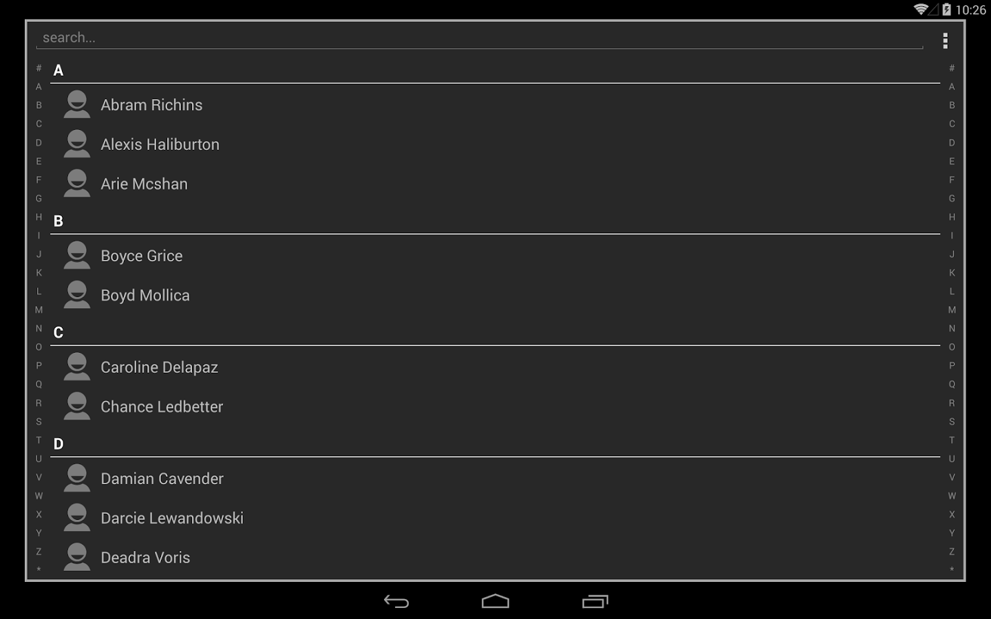 Si no puede recordar la primera letra del nombre de una aplicación / contacto se pueden encontrar de forma rápida utilizando la función de búsqueda en la parte superior, que busca una serie de letras en cualquier parte del nombre de la aplicación / contacto.