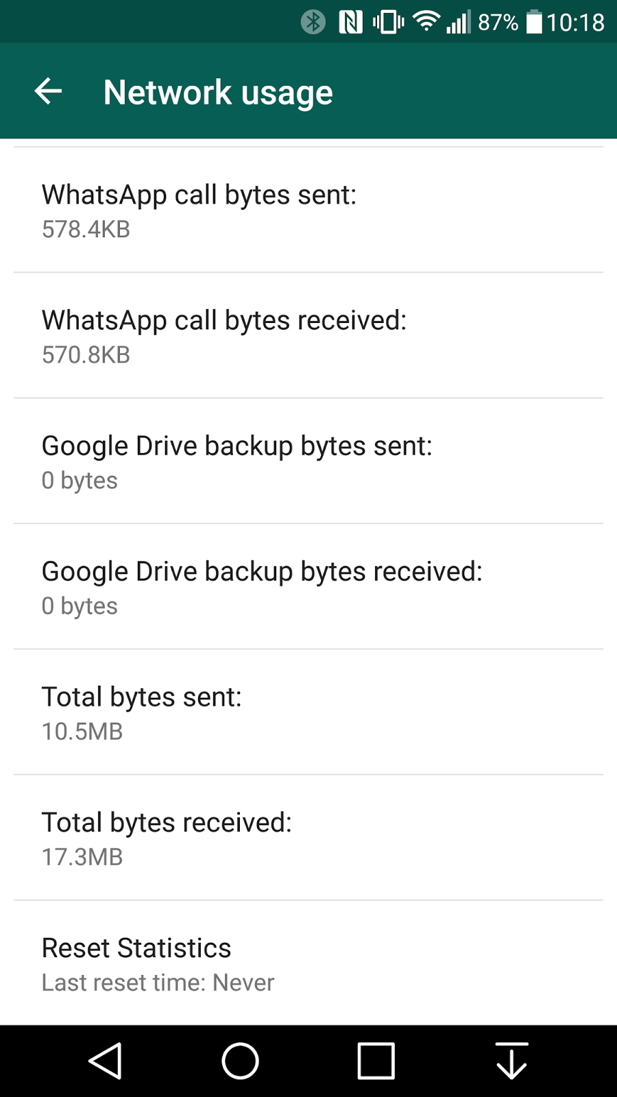 Since WhatsApp has started the calling option, there have been some feature updates on that front as well. Now you get the Low Data usage option for voice calls on cellular data networks. You can also check the amount of data sent out and received by WhatsApp in case you are monitoring your data usage. You also have options such as ‘Google Drive backup bytes sent’ and ‘Google Drive backup bytes received’, but no way to trigger a Google Drive backup. Maybe that’s a future update.