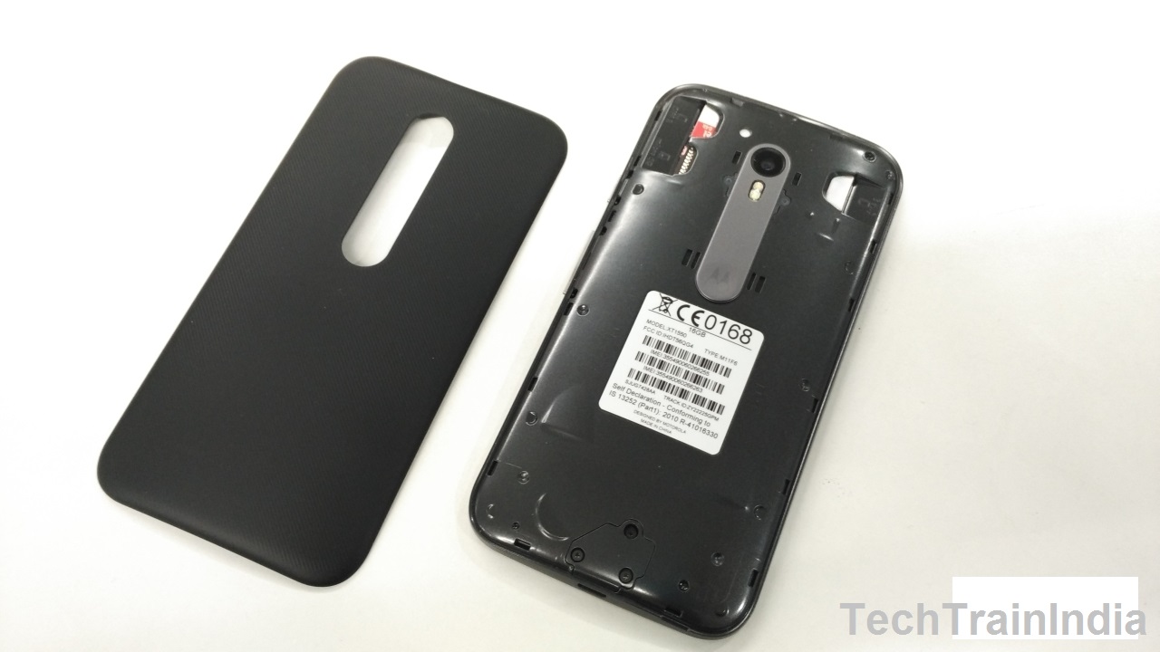 Motorola has made minor changes to the design in the front and a significant one behind. On the front, the thing that is different is that in the place of metallic grille which stood out on the earpiece speaker and base, you now have two depressions. While they may look good, the limited space easily attracts dust that is difficult to remove. The bezel on the top and bottom certainly looks thicker for a 5-inch phone. The Corning Gorilla Glass 3 protection is a definite plus point, helping to keep the scratch and smudge marks away.